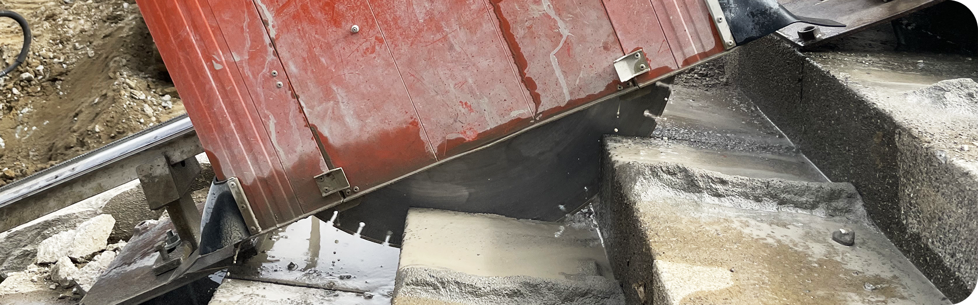 道路舗装の切断・目地切り・床版幅広く施工しており現場状況により排ガスが出ない電動フラットソー施工、また3mm~10mm幅の目地カッターの施工、切断幅50mmの融雪溝切断工事の施工実績もあります。湿式のフラットソー施工の場合最大800mmまで切断が可能となっております。