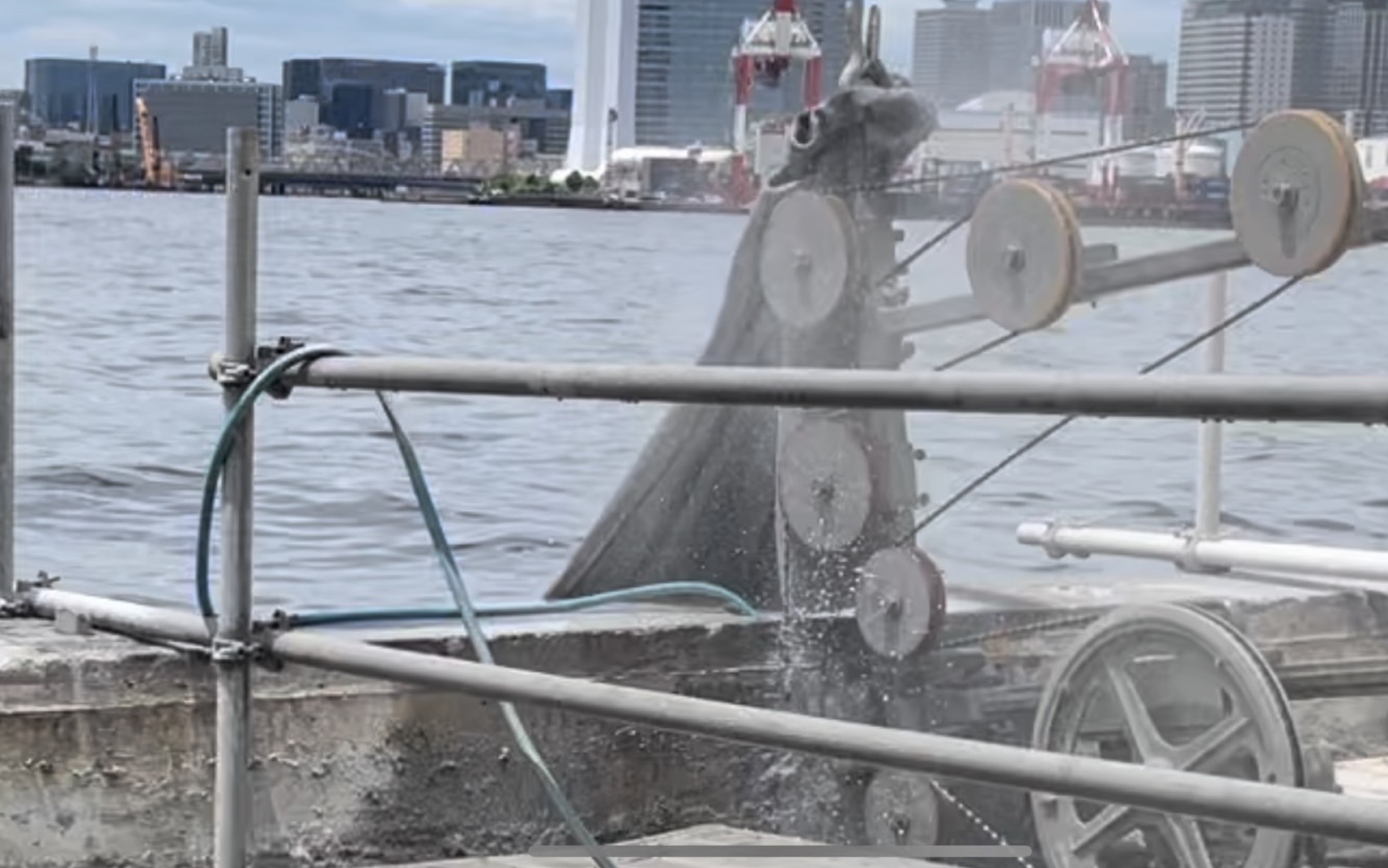 切断対象にワイヤーを巻き付け張力をかけながら高速回転させることで切断します。コンパクトな設計となっており低騒音・低振動が基準となっている現場では周囲の騒音環境に配慮し施工することができます。また漏水できない現場での施工には集塵機能が付いた乾式ワイヤーソーでの施工をお勧めします。